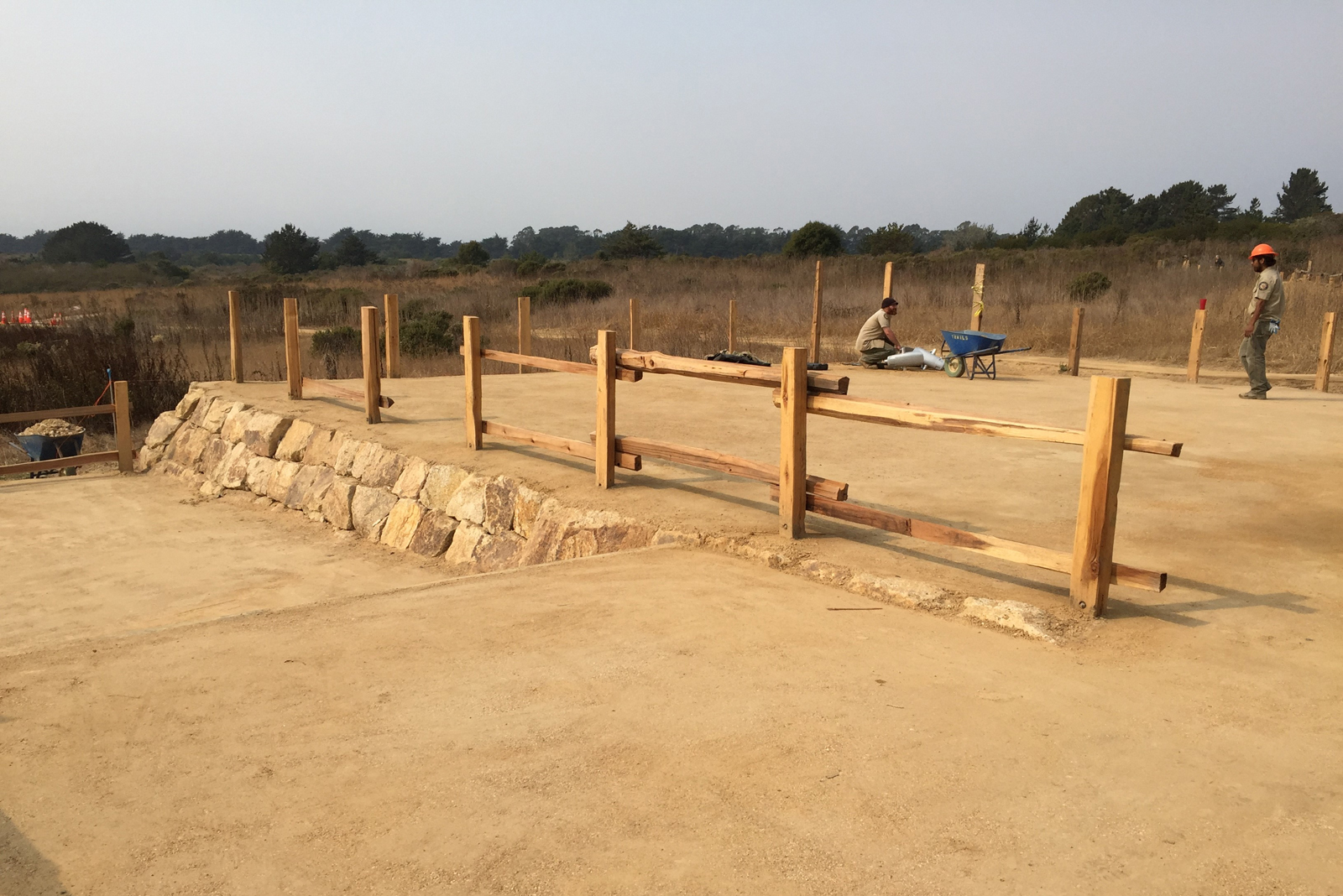 The Año Nuevo Picnic Area near the Marine Education Center and Park Store has been upgraded to be ADA compliant. This involved grading the soil so that it is level, building foundation walls, compacting the soil and installing new fencing around the perimeter. The new picnic area is two levels with access to the lower level via either stairs or a ramp making both levels accessible to all. I am sure visitors for many years will enjoy the benefits of this project designed and supervised by State Parks and constructed by State Parks staff and the California Conservation Corp.