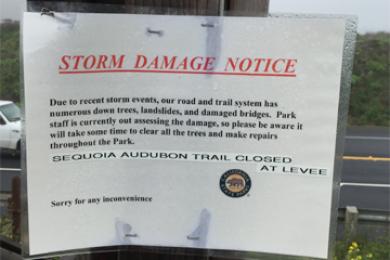 State Park Sector Superintendent, Terry Kiser, reported “Maintenance staff is still assessing the storm damage to backcountry trails but many landslides, washouts and downed trees need to be cleared up. Clearing and repairs will be ongoing and some trails may be impassable.”