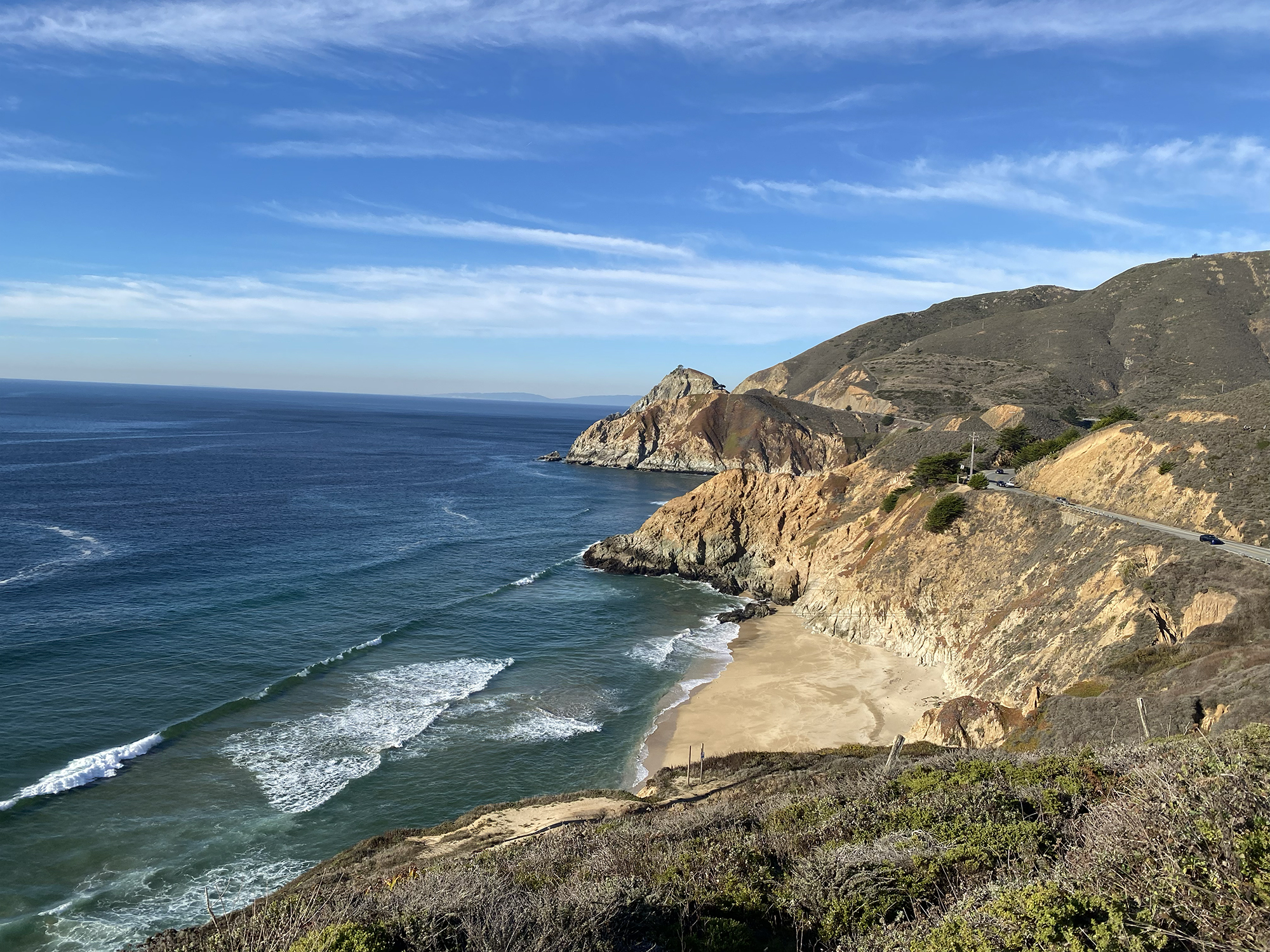 We chose the more challenging route, knowing we had sandwiches on our pack to look forward to. It’s a steep climb, but worth it! If it’s a clear day you will likely be able to see the Farallon Islands and possibly some breaching whales. After taking in the views for a while, we make the steep descent to close our loop on Old San Pedro Mountain Road, continuing toward the picnic area.