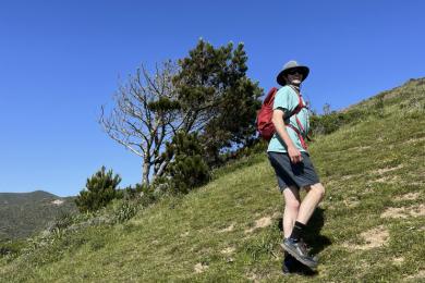 About 1.3 miles later we detoured to the right on a smaller trail to make a 2-mile loop to a lookout over Gray Whale Cove. The elevation remains constant as we roam north. The stunning ocean views and sea breeze are crisp and refreshing. From the Gray Whale lookout you can return the way you came or add some elevation and summit the nearest peak to the south marked by a single Monterey cypress.